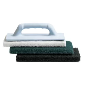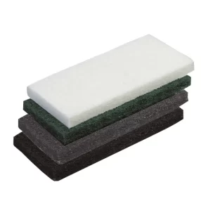 - Материалы и свойства: нейлоновое волокно с абразивными частицами; связующее со смолой обеспечивает превосходное качество очистки на камне, керамических плитках, ПВХ и других устойчивых покрытиях.
